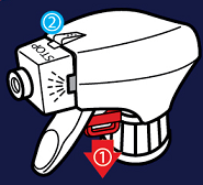 1. 윗부분에 있는 잠금장치를 누른상태에서 노즐을 90도 돌려 분사 이미지가 위로 항하고 있는 것을 확인한 후 분사합니다.