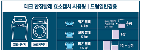 드럼세탁기의 경우 세탁 창에 달라붙어 녹지 않을 수 있으니 세탁조 깊숙이 넣어주세요.