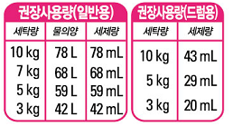 2. 일반 세탁기 및 드럼 세탁기 사용시 표기된 표준사용량을 참조하여 사용하시오.