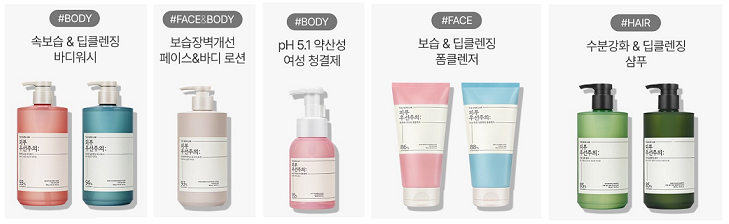 두피부터 바디까지, 피부를 가장 우선으로 생각하는 관점에서 저자극 / 자연유래 / 무첨가의 세 가지 제품 철학을 제시합니다.
