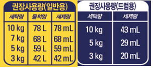 - 일반 세탁기 및 드럼 세탁기 사용시 표기된 표준사용량을 참조하여 사용하십시오.