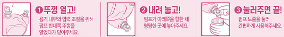 - TIP : 내용물을 1/3정도 사용하신 후에는 펌프 반대쪽 부분을 살짝 열어두시면 섬유유연제가 더욱 부드럽게 흘러나와 편리하게 사용이 가능합니다.