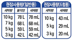 2. 일반 세탁기 및 드럼 세탁기 사용시 표기된 표준사용량을 참조하여 사용하시오.