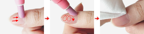 - 큐티클 라인 안쪽 방향으로 묵은 각질을 살살 밀어내며 큐티클 라인을 정리해 주세요