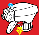 1. 윗부분에 있는 잠금장치를 누른 상태에서 노즐을 90도 돌려 분사 이미지가 위로 향하고 있는 것을 확인 한 후 분사합니다.