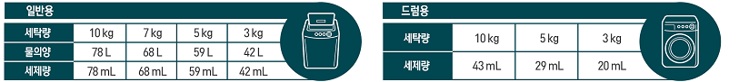 - 표준사용량: 일반) 물 5L에 5ml / 드럼) 물 5L에 7.7ml