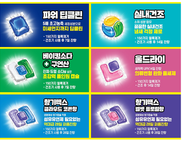 |테크 수퍼캡스 캡슐세제 6종 라인업