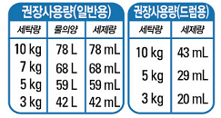 2. 일반 세탁기 및 드럼 세탁기 사용시 표기된 표준사용량을 참조하여 사용하시오.
