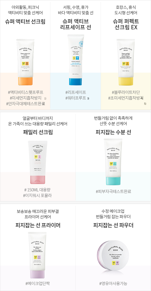 더페이스샵] 내추럴 선 에코 자외선차단제 라인업